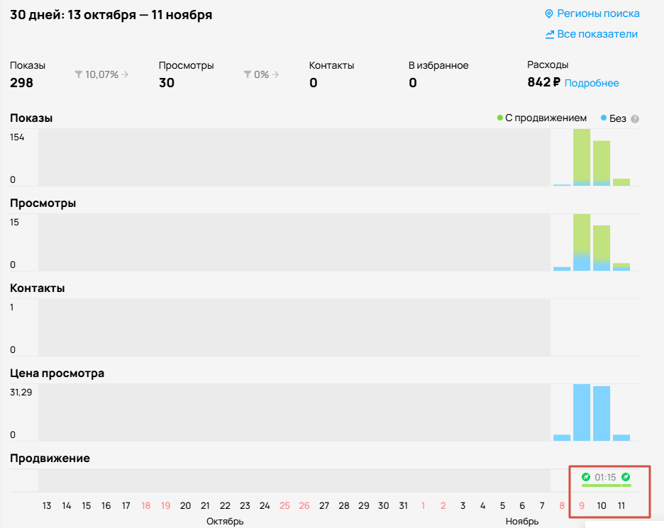 Количество просмотров растет, а конверсия в контакт снижается. При этом ставки и бюджеты увеличиваются.