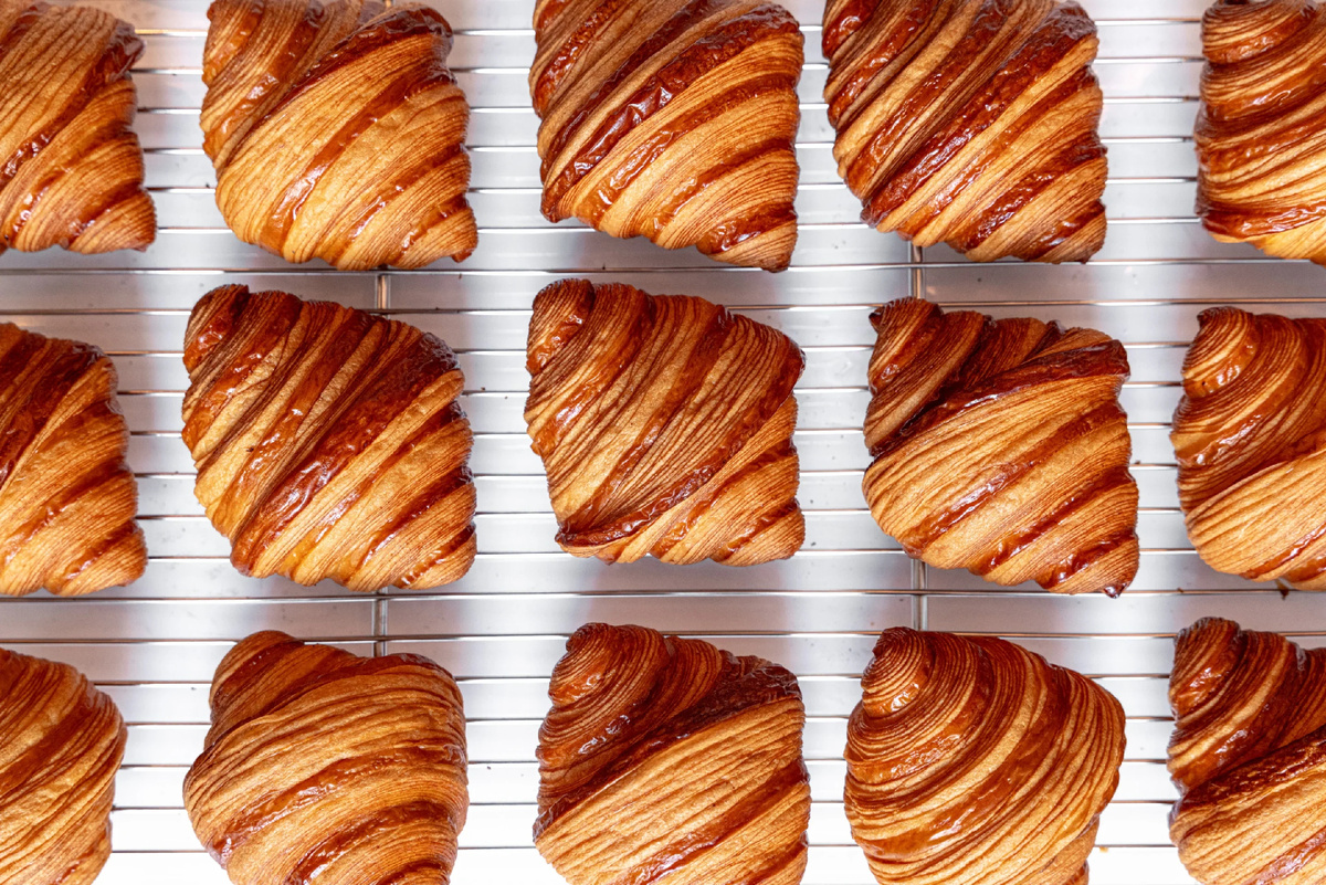 — Средние параметры для окончательной расстойки: 28–34°C, относительная влажность — 75%, продолжительность — 90 минут. Выпекать начинаем при 210°C, затем уменьшаем температуру до 180°C, в целом выпекаем 14–15 минут. Точные показатели всегда зависят от особенностей оборудования. Кроме того, на любом этапе важен визуальный контроль. После выпекания готовые круассаны нужно выдержать в условиях цеха до полного остывания.