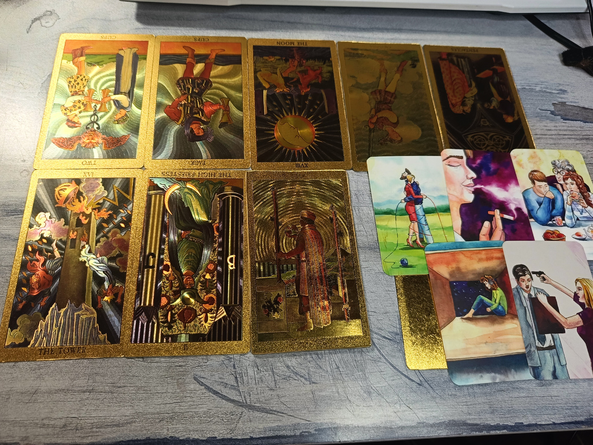 ....его психологические проблемы или пагубные склонности крайне усилились и начали напрямую влиять на повседневную жизнь.... Дорогие дамы, здравствуйте! Рада приветствовать вас. С вами Наталья — таролог, астролог и нумеролог с опытом более семи лет, всегда на связи 24/7. Давайте обратимся к интересному раскладу, пришедшему из потока. Кого-то из вас очень волнует вопрос: как же поживает ваш бывший возлюбленный? Итак, перед нами человек, который, как мы видим, состоит в браке, а Вы бли его Тайной Жрицей. Давайте посмотрим, что говорят карты. Двойка Кубков перевернута, Паж Кубков также лег вверх ногами. Это говорит о том, что в его жизни сейчас нет ни любви, ни взаимопонимания, ни флирта, ни искренних эмоций или договорённостей. Стоит отметить, что этот человек и прежде был весьма своеобразен во время ваших встреч. Возможно, его поведение казалось вам странным, или же имели место определённые зависимости или психические особенности. И сейчас эти негативные черты характера, увы, приобрели