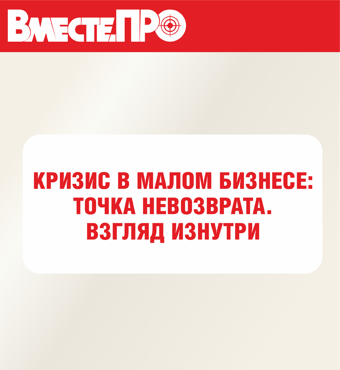 КРИЗИС В МАЛОМ БИЗНЕСЕ: ТОЧКА НЕВОЗВРАТА. ВЗГЛЯД ИЗНУТРИ