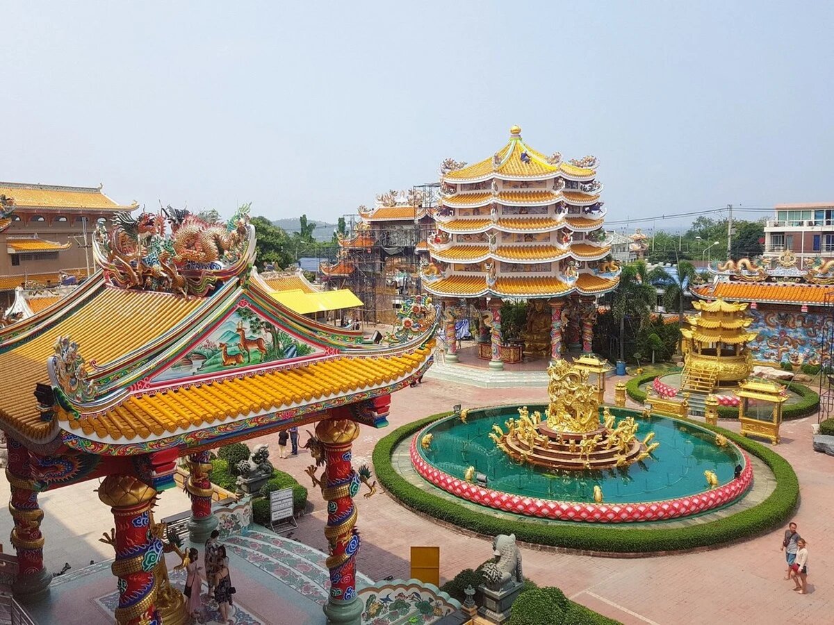 На подъезде к храму кажется, будто время замедляется. Среди зелёных холмов появляется красно-золотой силуэт пагоды, опоясанный фигурой дракона, словно охраняющего древнюю тайну. Этот храм, построенный в начале XVIII века, хранит дух старого Сиама — с ароматом благовоний, звоном колоколов и мягким светом фонарей.