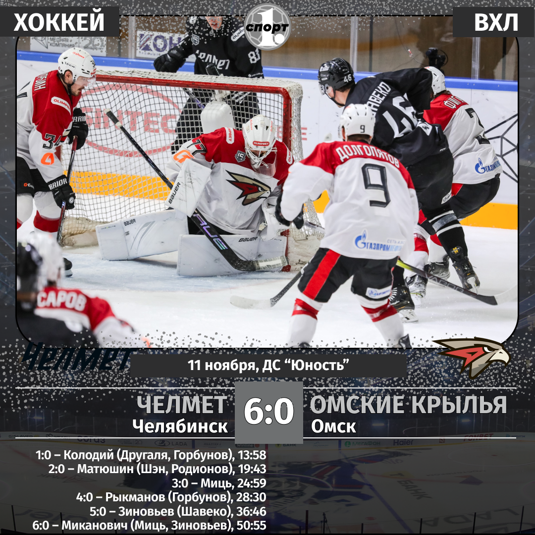 Хоккейный клуб «Челмет» разгромил со счетом 6:0 «Омские крылья» в ВХЛ