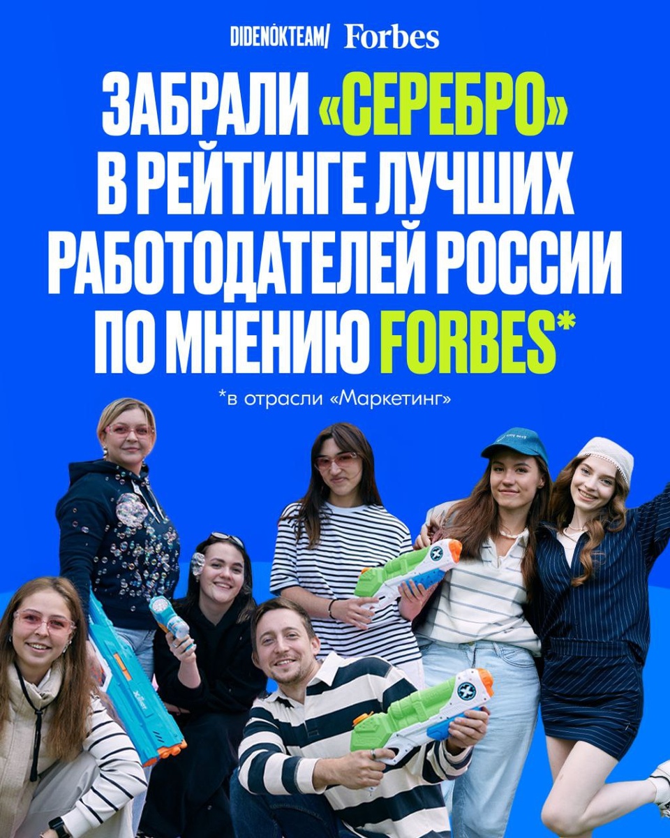 Мы в рейтинге Forbes! 🏆 Наше агентство вошло в рейтинг лучших работодателей России 2025 по версии Forbes. Компании оценивали по ESG-критериям: мы получили золото в категории «Сотрудники и общество», а также два серебра — за заботу об окружающей среде и корпоративное управление. Итоговое серебро забрали в отрасли «Маркетинг»🥈 Спасибо за вашу поддержку! А мы продолжаем любить место, в котором работаем. И гордимся DIDENOK TEAM еще больше! 💪 #кейсDT 💚 Подписаться на DIDENOK TEAM