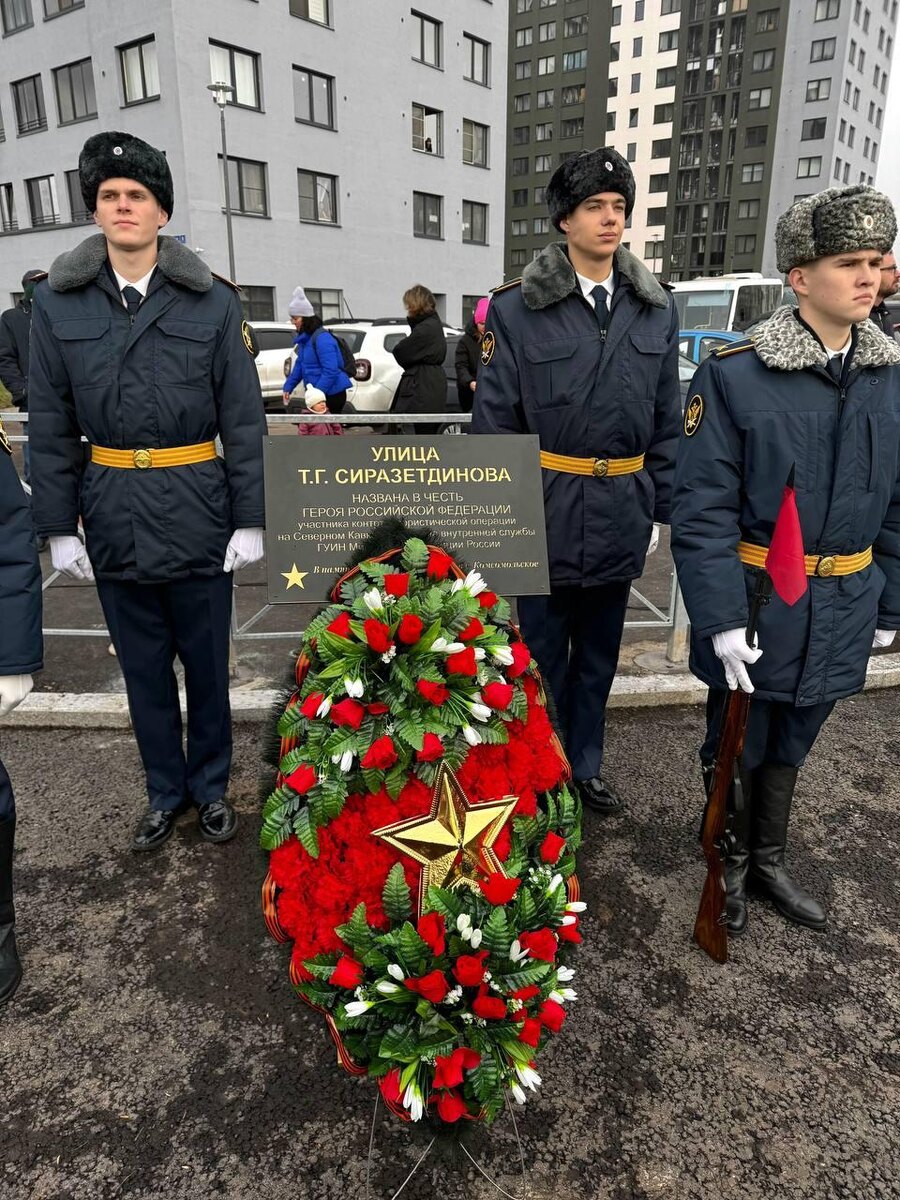 🎖 В Петербурге открыли улицу имени Героя России Тимура Сиразетдинова В Выборгском районе Санкт-Петербурга состоялась торжественная церемония открытия улицы, названной в честь капитана внутренней службы Тимура Сиразетдинова — Героя Российской Федерации, погибшего при выполнении служебных обязанностей. В мероприятии приняли участие ученики школы, носящей имя Героя, курсанты, ветераны, сотрудники ГУФСИН, бойцы спецподразделения «Тайфун», а также жители района и родственники погибших офицеров. Мемориальную табличку открыла мать Тимура — Галина Якубовна Сиразетдинова. Как отметил вице-губернатор Игорь Потапенко, подвиг Тимура Сиразетдинова остаётся примером мужества и верности долгу. В знак признания заслуг сотрудники подразделения «Тайфун» получили награды от губернатора Александра Беглова. Фото: Игорь Потапенко Подписаться на Петербургский дневник в MAX