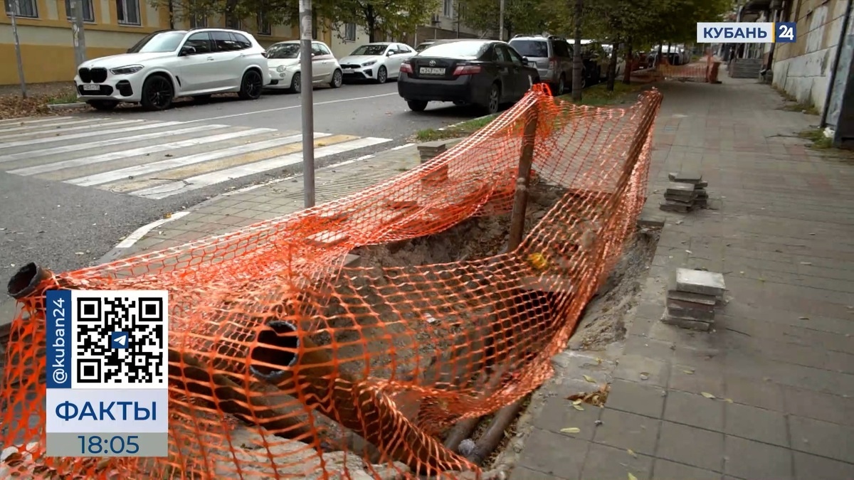 Скриншот видео телеканала «Кубань 24» «Ямы в центре Новороссийска, по словам местных жителей, здесь уже около месяца. Глубина каждой — около двух метров. При этом ограждение присутствует, но ночью его не особо видно», — сообщает корреспондент телеканала «Кубань 24» Дарья Остапец. Не увидела ограждение ночью и провалилась в яму одна из жительниц Новороссийска. Серьезных травм женщине удалось избежать: выбралась самостоятельно, отделавшись синяками. О недостаточном освещении рассказал и Антон Ветров. «Здесь темно, ничего не горит, вечером можно свалиться. Ребенка забираю вечером сам, потому что можно и провалиться», — делится житель Новороссийска Антон Ветров. Ямы сразу на нескольких улицах разрыли для ремонта труб. В Новороссийске до конца этого года заменят около 10 км сетей водоотведения и теплоснабжения. В рамках подготовки к отопительному сезон коммунальные службы завершили перекладку более 4 км изношенных магистральных тепловых сетей и восстановили около 5 тыс. кв. м асфальта. Заве