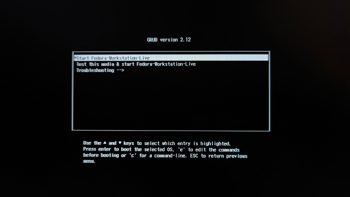 Перезагрузите компьютер и войдите в BIOS или UEFI, чтобы выбрать загрузку с USB-флешки. В загрузочном меню выберите пункт Start Fedora-Workstation-Live