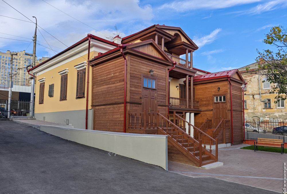 Два года назад я публиковал фотографии, сделанные в начале и на промежуточном этапе реставрационных работ фамильного дома Чернышевских в музее-усадьбе Н.Г.Чернышевского. В прошлый раз мы смотрели на финал наружных работ на архитектурном памятнике, а в этот раз Градозащитный Совет при Саратовской Областной Думе был приглашён на осмотр завершающего этапа внутренних работ. Экскурсию для нас провели директор музея Елена Николаевна Манова и директор подрядчика работ — реставрационно-строительной компании ООО РСК "Наследие" Александр Михайлович Иванкин. В ходе работ помещения привели к современным музейным нормам и требованиям: сигнализация, безопасность, микроклимат. Вход теперь приспособлен для маломобильных групп населения. Во второй комнате цокольного этажа раньше экспонатов не было. Два года назад она выглядела так. Теперь здесь появится часть экспозиции. 3D-анаглиф (Как смотреть 3D-анаглиф?) Поднимаемся на главный этаж. За два года всё изменилось до неузнаваемости. Каминные печи отрест