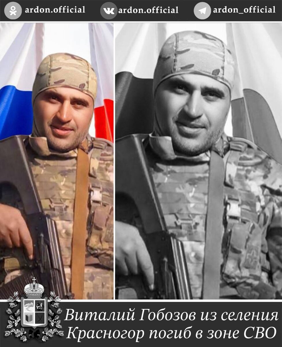 🕯В зоне специальной военной операции погиб житель селения Красногор Гобозов Виталий Отарович. Прощание с Виталием состоится 13 ноября по адресу: с.Красногор, ул.Хетагурова, 67