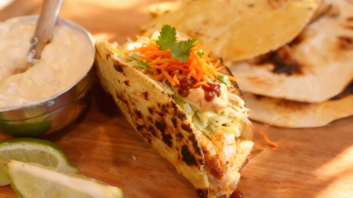Домашние рыбные тако с острым соусом чипотле Треска филе - 500 гр. Капуста - 240 гр. Морковь - 120 гр. Масло оливковое - 60 мл. Перец чили молотый - 4 гр. Паприка копченая - 4 гр. Зира - 2 гр. Соль - 4 гр. Перец черный молотый - 2 гр. Сметана - 120 гр. Майонез - 60 гр. Перец чипотле в соусе адобо консервированный - 20 гр. Лайм (сок) - 40 мл. Тортилья - 248 гр. Кинза - 8 гр. пошаговый рецепт на cookhelp.ru #простыерецепты #быстроприготовить #изрыбы #рецепты #cookhelp