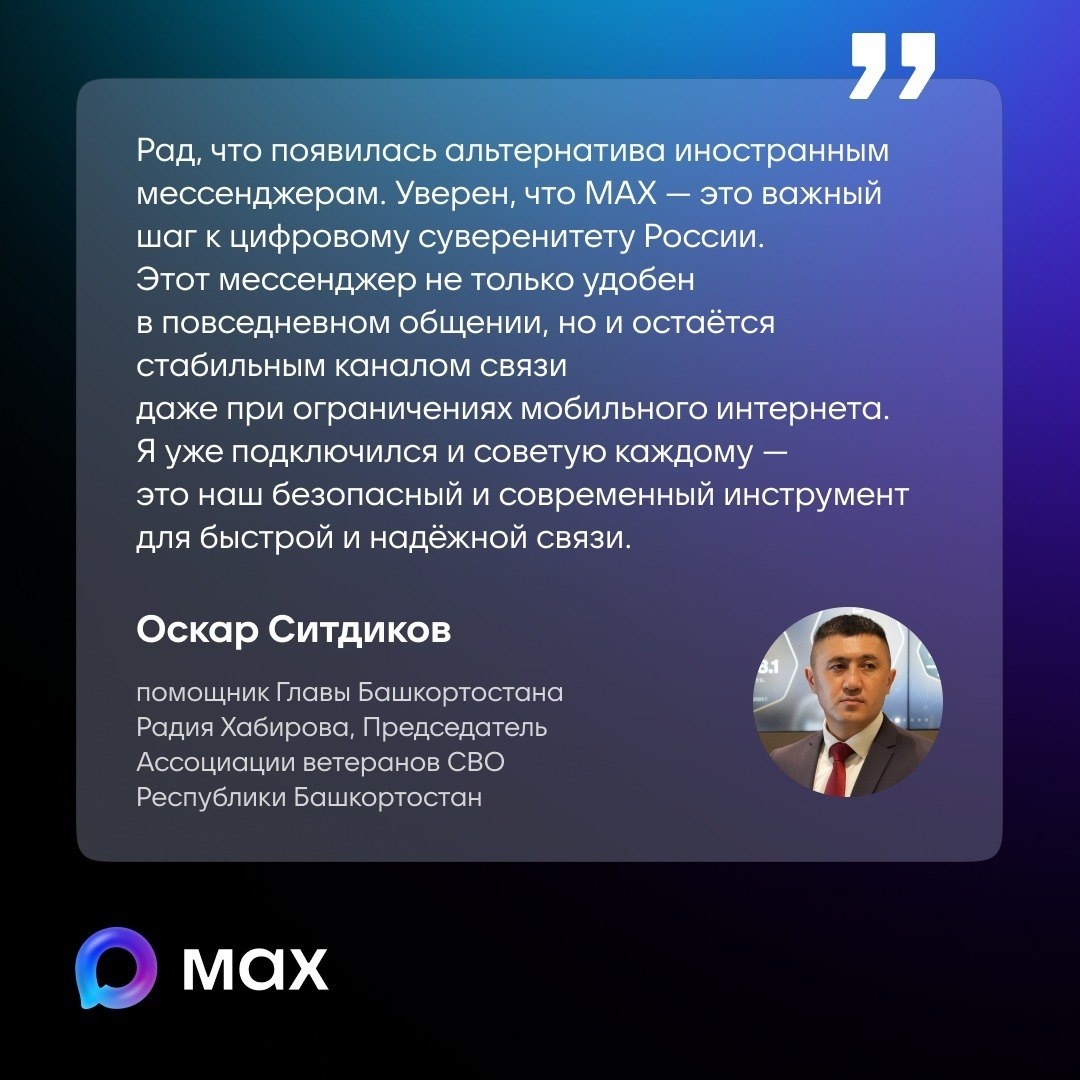 Все больше жителей Башкортостана выбирают национальный мессенджер МАХ. У него ряд преимуществ. Среди основных качество связи и видеозвонков даже при ограничениях мобильного интернета. А интеграция с госуслугами и искусственным интеллектом дает пользователям еще больше возможностей для работы и общения. В карточках мнения известных людей республики, которые одними из первых оценили национальный мессенджер МАХ. Источник https://uchaly102.ru/?p=110365