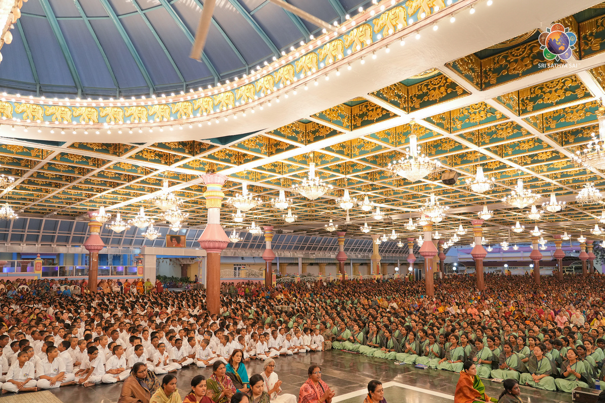 🪸 Насладитесь Божественной атмосферой Прашанти Нилаям Новости Прашанти Всемирные Акханда Бхаджаны Шри Сатья Саи — Заключительная сессия 9 ноября 2025 г. Пока лучезарная лампада преданности, Акханда Джьоти, продолжала мерцать в течение священной ночи, Прашанти Нилаям вновь стал бьющимся сердцем всемирной молитвы и божественной вибрации. Всемирные Акханда Бхаджаны Шри Сатья Саи, начавшийся вчера вечером, достиг своего священного завершения сегодня вечером, завершив 24 часа непрерывных проникновенных бхаджанов, возносимых с чистой любовью к Лотосным Стопам Бхагавана Шри Сатья Саи Бабы. Прошлой ночью даже когда температура понизилась, привнося в воздух безмятежную тишину, лёгкая прохлада окутала Ашрам, звук хлопков становился всё громче и громче, поддерживая ритм неустанного бдения преданных всю ночь. Их взоры созерцали Его божественный облик в священном Саннидхи, а их уста непрестанно повторяли Его Имя, Саи Рам, Говинда, Аллах, Йесу, Будда, Махавира, отражая саму суть единства всех р