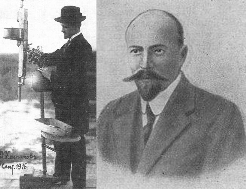 Создатели самолета.Слева Л.Д. Колпаков-Мирошниченко с созданной им турельной установкой для пулемета «Кольт» Спарава — Витольд Иванович Ярковский русский и польский инженер-авиастроитель. Автор многих патентов в области авиастроения, пионер авиации и популяризатор русской и польской авиации