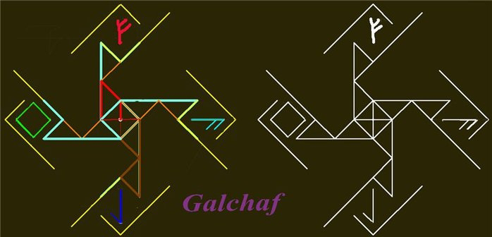авторское описание: Не для кого не секрет, что со временем ПМ теряют заряд. Данный став изначально предназначался для подзарядки ПМ продолженного действия. Но из практики выяснилось, что он так же прекрасно дает дополнительный заряд и во время проведения первичной активации, позволяя тратить меньше своей личной силы. МФ и порядок прорисовки: Пусть Перт-найдет в окружающем пространстве Совило- энергию. Пусть Йера соберет энергию стихий (огня (Феху)/воздуха (Ансуз)/воды (Лагуз)/ земли (Ингуз), светил, космоса, Богов и предаст при помощи Райдо собранный заряд Уруз в место аккумулирования Ингуз (центральное). Пусть Ингуз накапливает и передает энергию любому предмету, в его центр. Рисовать начинаем с северного луча. Далее по кругу. Став наносим на достаточно большой кусок носителя (картон, материя, фанера, камень, дерево, запеченное тесто с солью в пропорции 1:1), минимальный размер 20*20 см. На бумаге рисовать не рекомендую, она быстро теряет заряд. На бумаге допустимо рисовать