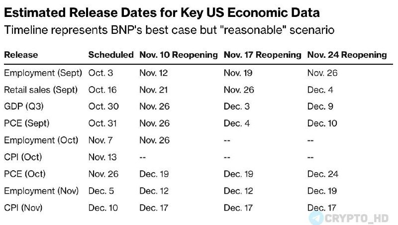 🇺🇸 Когда опубликуют макроданные США, если правительство возобновит работу 17 ноября (прогноз BNP Paribas