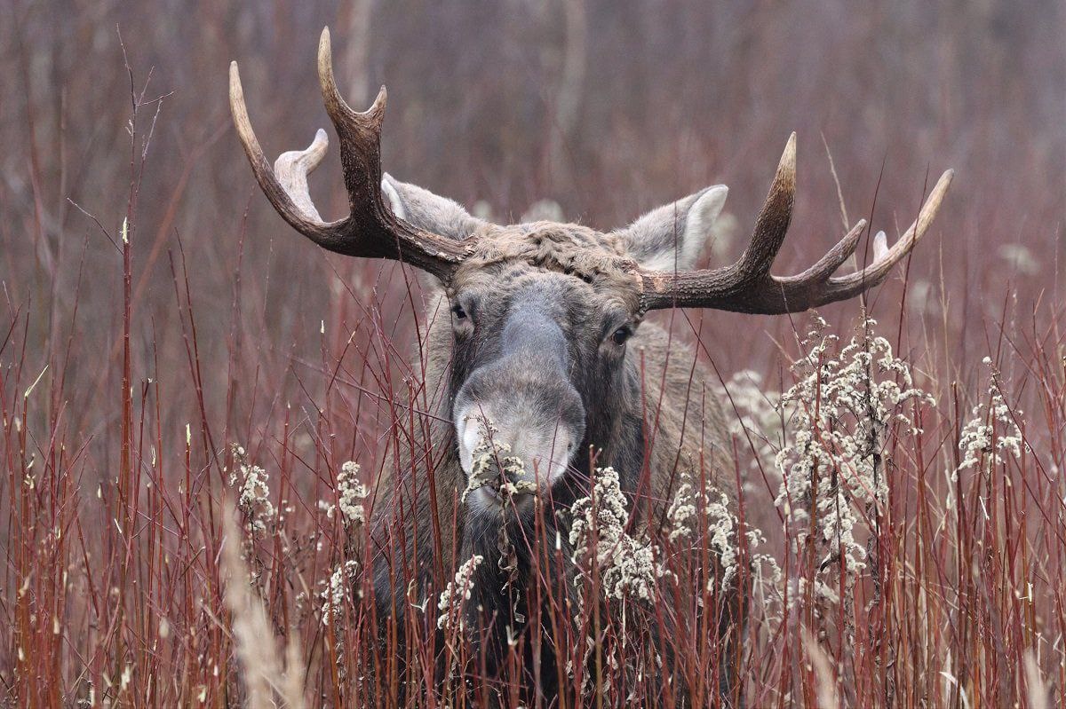 Лось за трапезой. Ежедневно взрослый лось (Alces alces) поглощает около 25 кг разнообразной растительности – ветки, кора, листья, травы, водные растения. Но его желудок – настоящий рекордсмен! Он способен единовременно вместить до 50 кг корма, что критически важно зимой. В холодный сезон рацион резко беднеет: лоси вынуждены питаться корой и ветками деревьев (особенно ивы, осины, сосны, рябины), хвоей и редкими жухлыми травами на проталинах. Этот скудный "зимний паёк" едва покрывает потребности гиганта. Лось обладает уникальной способностью переваривать древесный корм, недоступный большинству травоядных. Секрет – в особых бактериях-симбионтах в его многокамерном желудке, которые расщепляют целлюлозу. Благодаря этому, даже зимой лось эффективно извлекает энергию из грубых веток и коры.