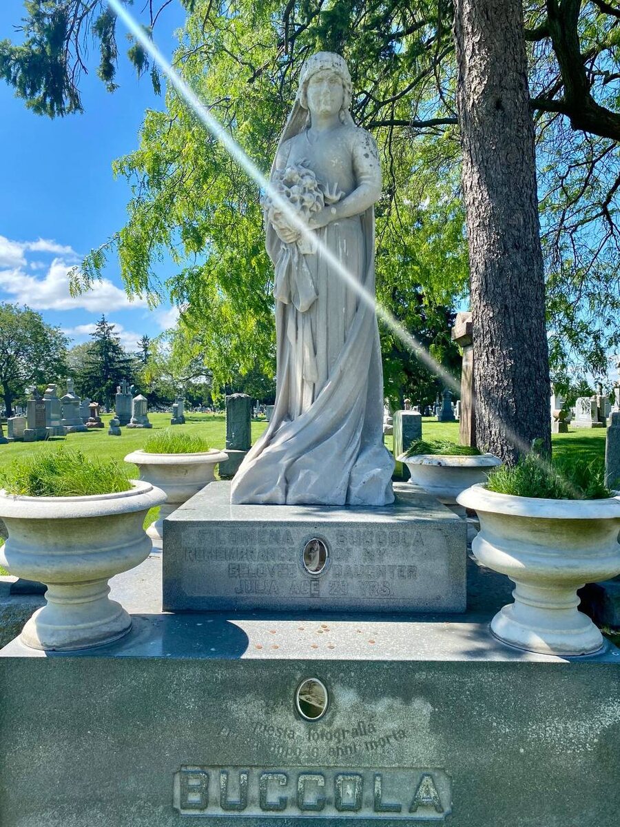 Мы уже рассказывали вам о странных смертях и загадочных находках. Но эта история — особенная. На кладбище Маунт-Кармел под Чикаго стоит памятник, от которого одних бросает в дрожь, а другим он дарит надежду. Мраморная девушка в свадебном платье с живой улыбкой — Джулия Буккола, ставшая легендой под именем «Итальянская невеста». Весна 1921 года. 29-летняя Джулия умирает во время родов. Её сын, Филиппо, рождается мёртвым. В последний путь Джулию провожают в свадебном платье — белом, кружевном, с фатой. Как будто она собирается не в загробный мир, а под венец. Мать Джулии, Филомена, не может смириться с потерей. И вскоре после похорон её начинают преследовать кошмары. Она приходила ко мне каждую ночь — бледная, плачущая, — вспоминала Филомена. — И повторяла: „Мама, я не мертва“ Женщина не выдерживает и уезжает в Лос-Анджелес, надеясь, что расстояние прекратит кошмары. Но сны становятся только навязчивее. Шесть лет Джулия «стучится» к матери, умоляя вытащить её из могилы. В 1927 году Филом