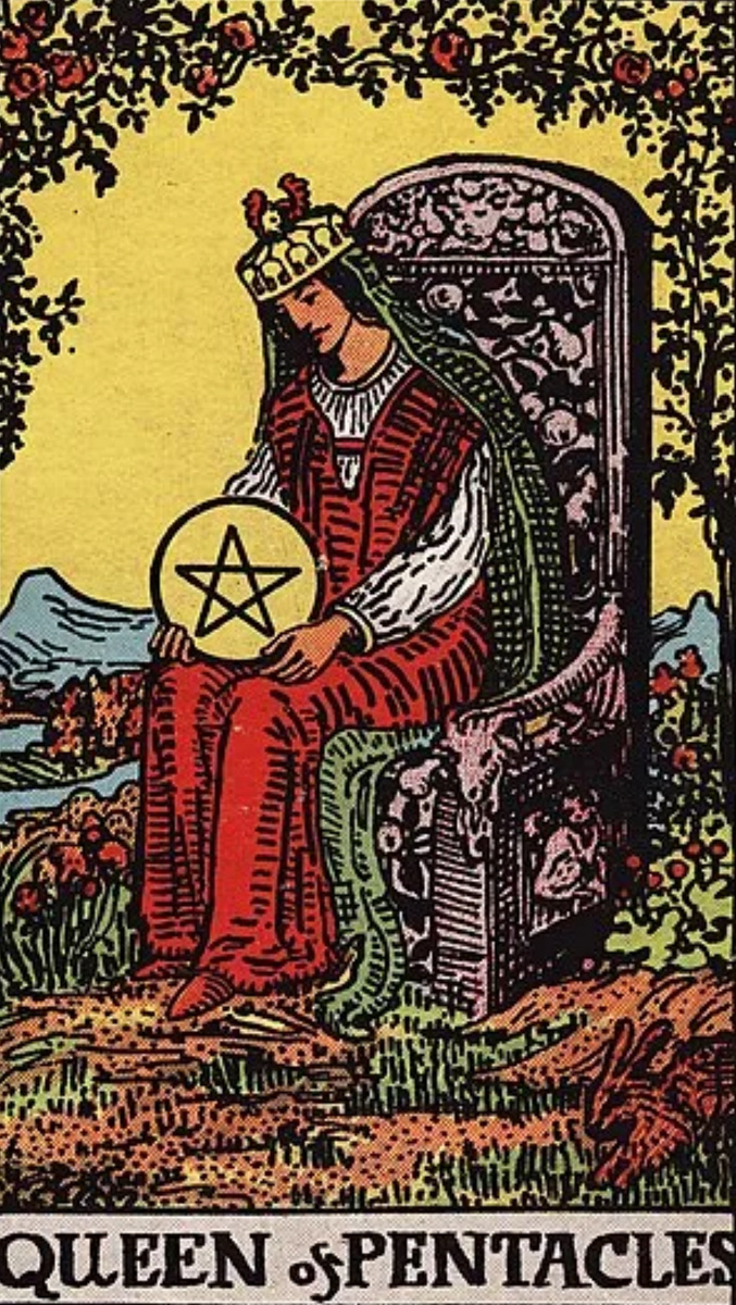 Королева Пентаклей ( КП) по астрологической системе Юрия Хана принадлежит к 10-му дому, которым управляет планета Сатурн, знак зодиака Козерог. Она завершает социальную роль женщины, находясь на самой высокой должности. Это наилучшая профессиональная деятельность и в ней можно многого добиться. Карьерный рост будет обеспечен. Королева Пентаклей умеет управлять людьми и нести ответственность. Эта женщина находится в мире мужчин. На равных с ними. На работе, в бизнесе или политике. Часто находясь на мужской должности, она может терять свою женственность. В этом случае ей и дома будет сложно выполнять роль заботливой хозяйки. По прямой КП женщина может справиться. И остаться женщиной как дома, так и на своей должности. В мужском мире она не первое лицо, но второе. Крутой заместитель. Очень хорошая помощница. Первое руководящее лицо даёт общие указания, а на ней лежит их исполнение. На неё сваливают ответственность в условиях недостаточной информированности. Поэтому ей приходитс