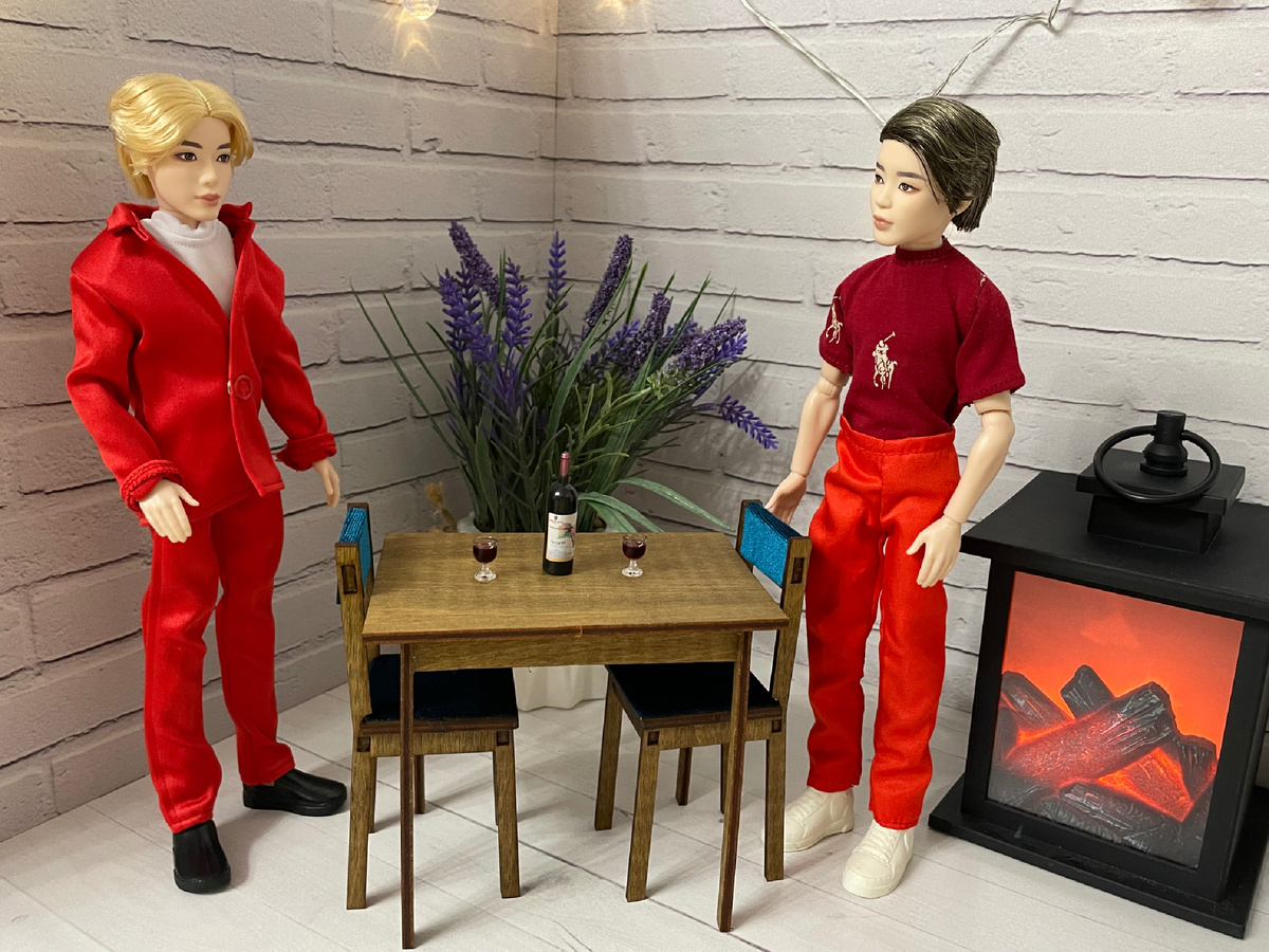 Ребята решили принять участие в челлендже Как-то вечером Джин решил пригласить Чимина в гости. -Джин-хён, ты сказал, что дресс код нашей вечеринки красный, но вроде ещё там что-то про вампиров было…А какие мы с тобой вампиры? -Ну только если энергетические…А так, мы можем посидеть, поговорить по душам. Я винишко краснодарское купил! Ребята удобно уселись за стол. Вино оказалось очень приятным на вкус. Огонь в камине потрескивал, создавая уютную обстановку. Фоном играла ненавязчивая музыка, кажется Джин включил свой сольный альбом. -Ты чудесный человек, Джин-хён. С тобой всегда очень легко! Вот нас в группе семь человек, а иногда просто поговорить не с кем! Вот Намджун-хён такой серьезный, и дома его не застать- то на выставке, то на саммите каком-то выступает, то на велосипеде катается. А где я, а где велосипед… А взять нашего Хосока! Я вот недавно предложил ему встретиться , а он говорит- приходи в танцевальную студию, я тебе новую хореографию покажу. В итоге я через три часа оттуда
