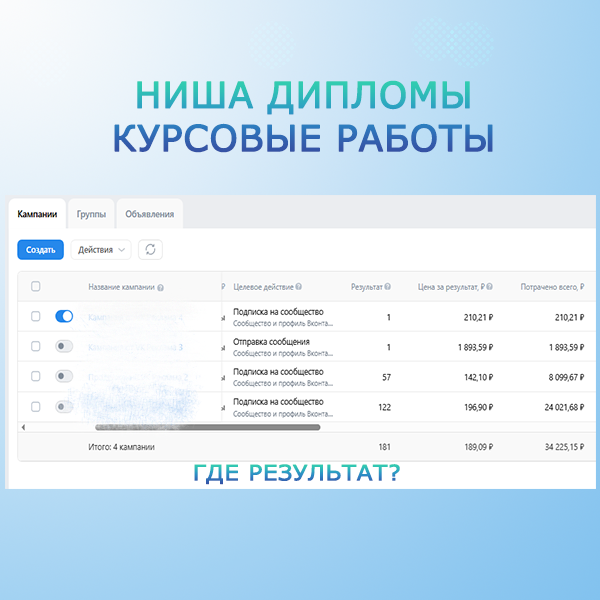 Это круто, что хоть 1 результат получен. Вообще результат должен быть нулевым. Почему так произошло? Если ваша рекламная кампания на отправку сообщений не приносит результатов, первым делом проверьт