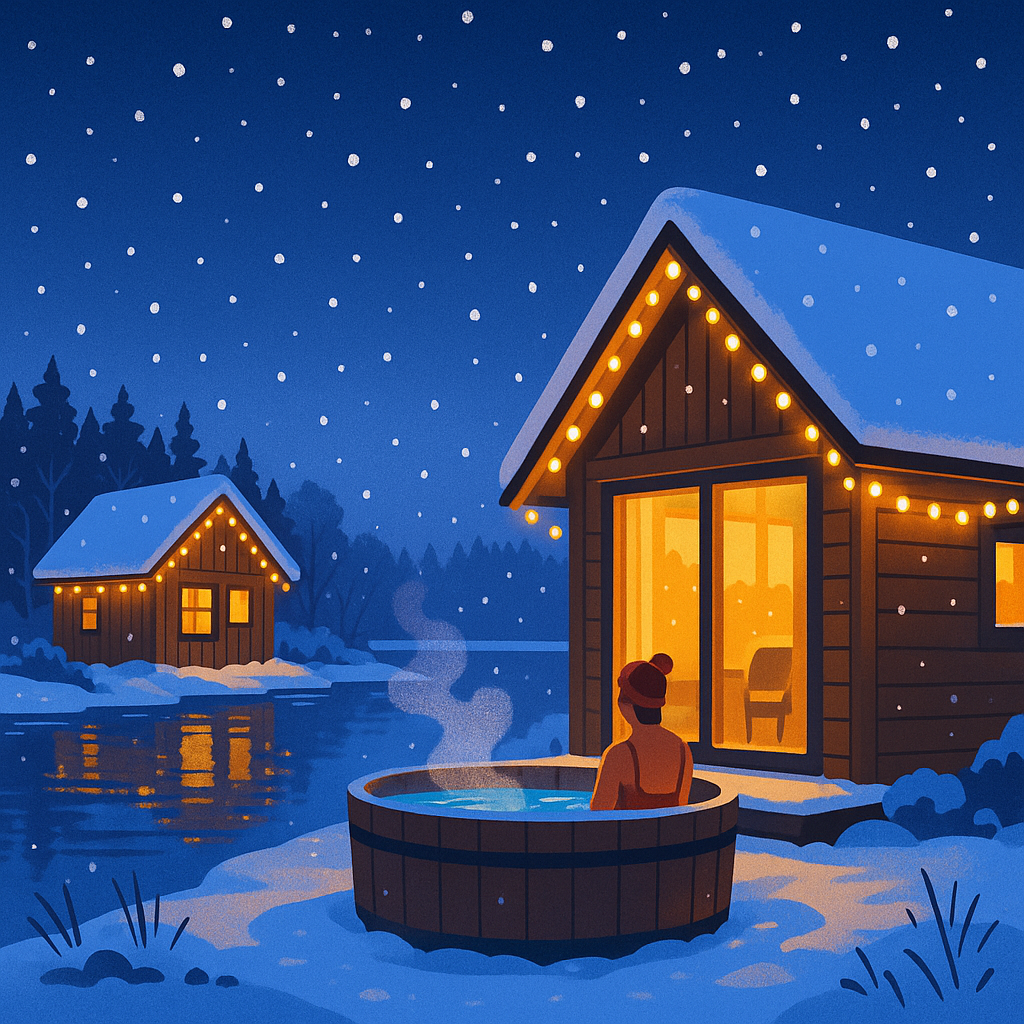 Чтобы вернуть это чувство, нужно всего одно — уехать туда, где тишина, свежий воздух и настоящая зимняя сказка. Глэмпинг Ruza River Club на берегу Рузского водохранилища — именно то место, где декабрь превращается в уютное ожидание праздника. Здесь новогоднее настроение рождается само собой: под снегопадом, у огня, в тёплых домиках с видом на воду. На природе всё чувствуется иначе. Здесь нет пробок и толп, только снег, воздух и покой. Утром вы выходите на крыльцо, а вокруг — белоснежный лес, дым из трубы, следы на снегу и мягкий свет из окон.