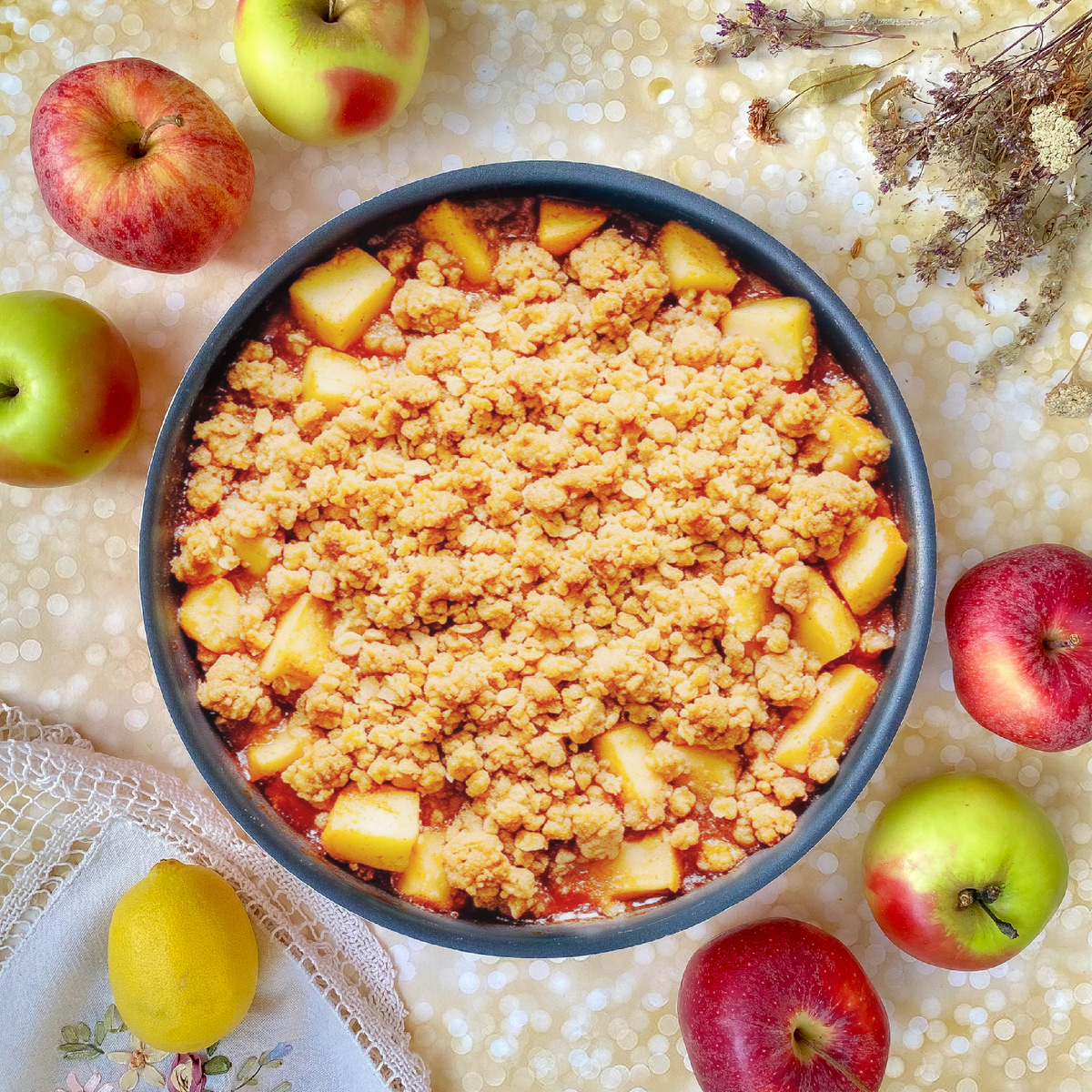 Тёплые яблоки с корицей под хрустящей масляной крошкой — простой десерт, который наполняет дом уютом. Для начинки: