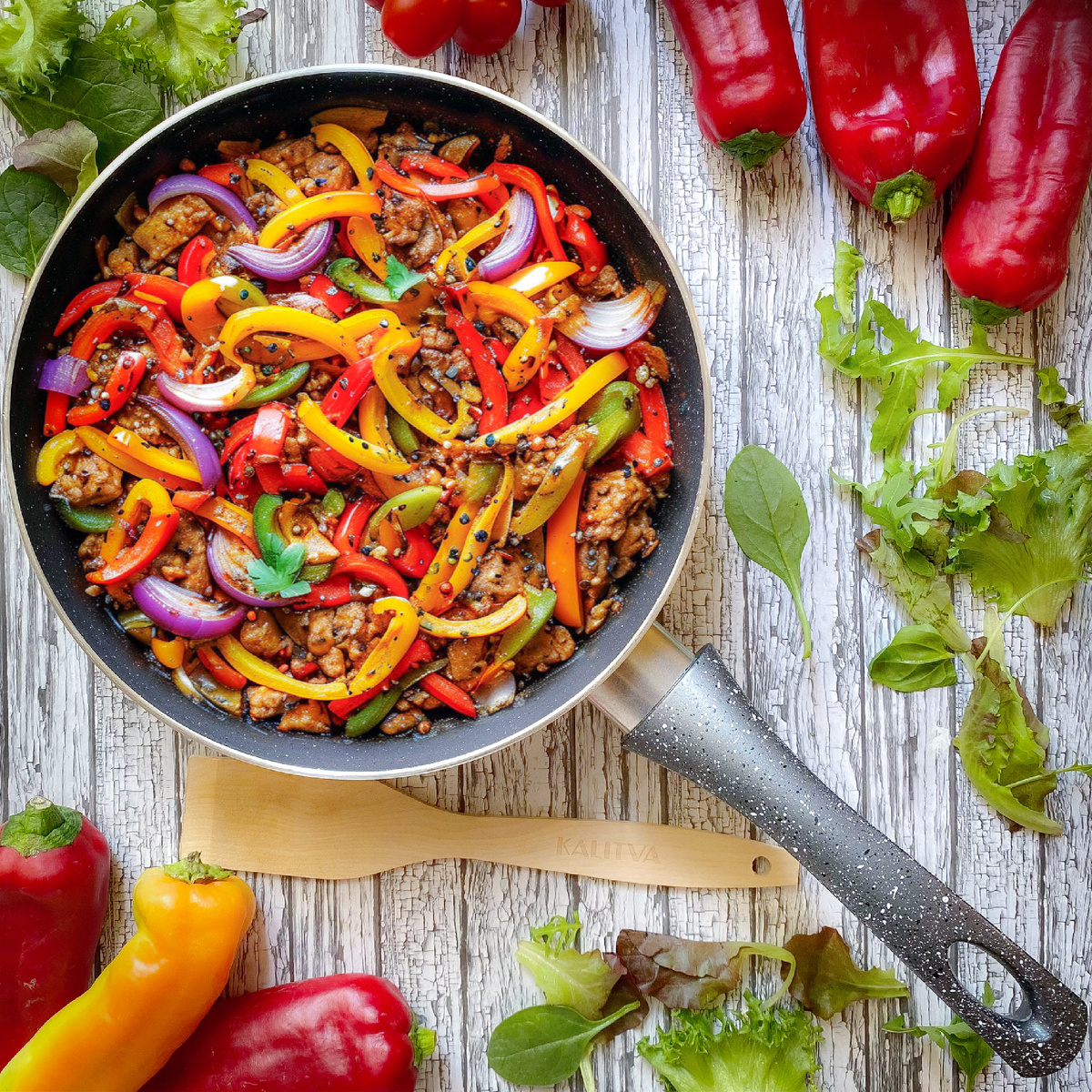 Сочные полоски мяса, сладкие перцы и лук — всё шипит и пахнет мексиканскими специями. Готовим? Для мяса и овощей: