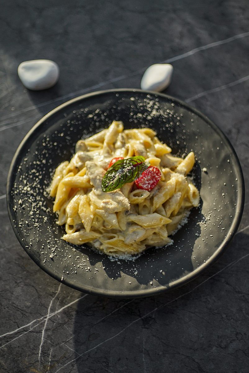 В миске смешайте йогурт, лимонный сок и цедру, сыр, щепотку соли и перца. На сковороде быстро прогрейте в масле измельчённый чеснок 20–30 секунд - влейте это ароматное масло в миску и перемешайте. Шаг 2 - Паста Сварите до al dente в хорошо подсоленной воде. Отлейте немного воды от пасты в отдельную емкость, она нам еще пригодится. Шаг 3 - Соединяем