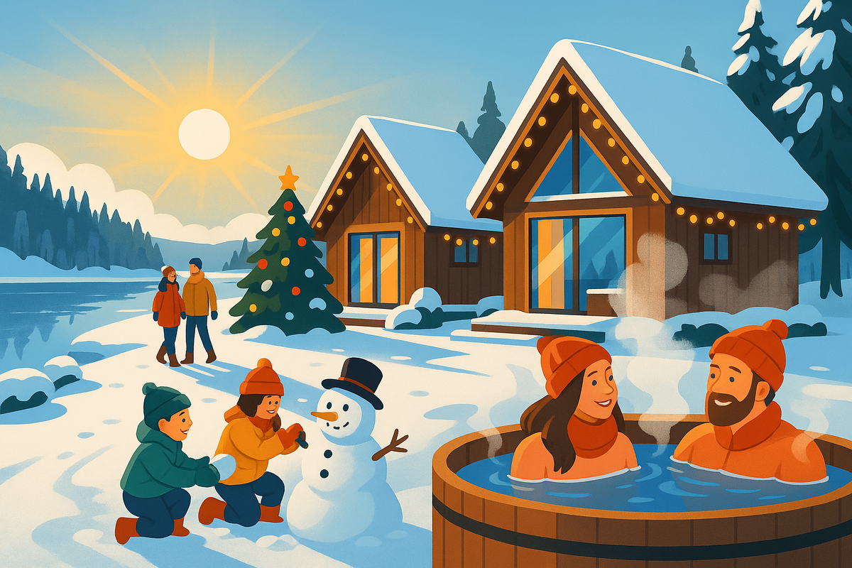 Здесь вы почувствуете атмосферу зимнего праздника — свежий воздух, уют, огоньки и ощущение, что весь мир замедлился. Можно устроить романтические вечера, семейные праздники или просто насладиться тишиной и красивыми пейзажами. Когда воздух наполнен морозной свежестью, горячий чан на улице становится самым настоящим удовольствием.