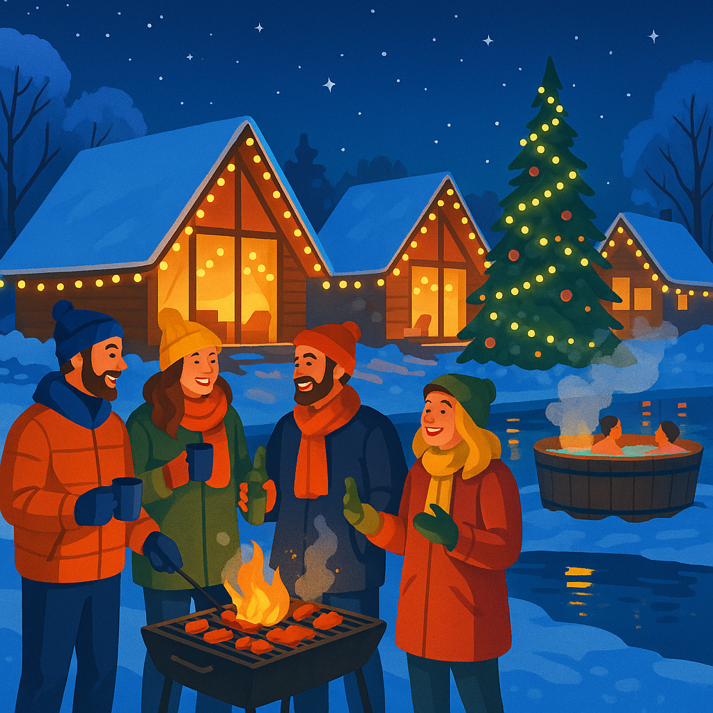 Коллеги становятся ближе, а атмосфера праздника создаётся естественно — без сценариев и пафоса. Вместо огромного стола и громкой музыки — уютные тёплые домики с панорамными окнами.