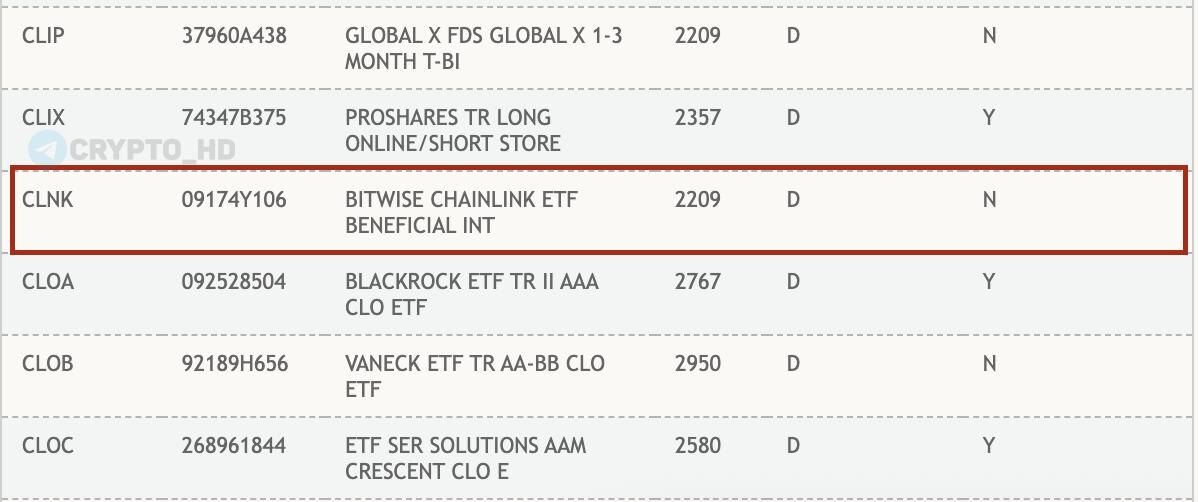 🔥 #LINK Тикер Chainlink ETF (CLNK) от Bitwise появился на сайте DTCC – смотреть