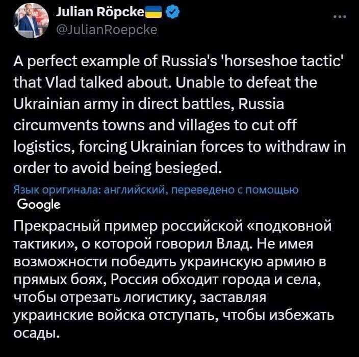Вместо того, чтобы биться об засевших в жилых многоэтажках ВСУшников, российская армия цинично обходит их с флангов и угрожает окружить, — негодует обозреватель «Бильд» Юлиан Рёпке. Подпишись на Телеграм Александр Семченко