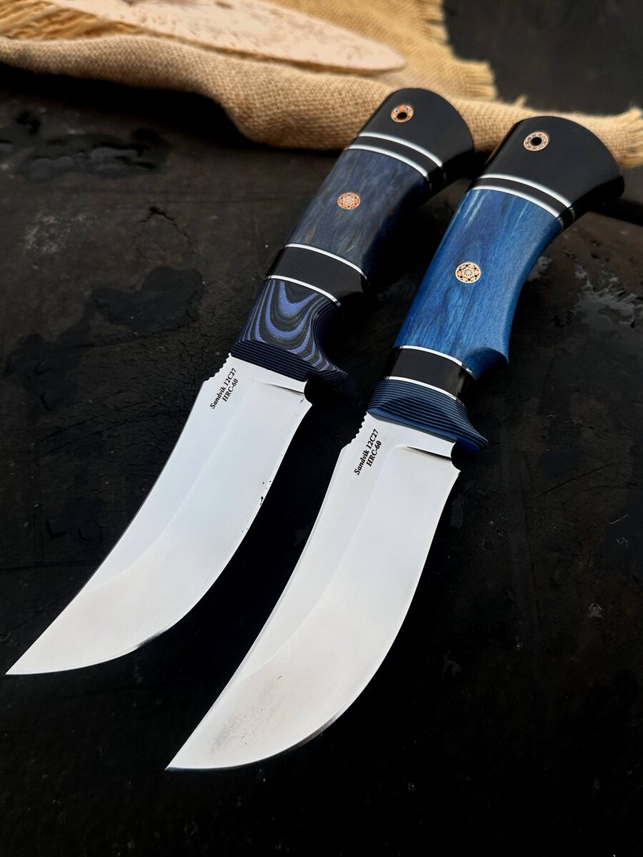 🔹 Разделочный нож “Бобр” — для тех, кто выбирает надёжность и стиль на долгие годы! 💙 Клинок из шведской нержавеющей стали Sandvik 12C27 (твёрдость 60 HRC) — сочетание остроты, износостойкости и защиты от коррозии. Для настоящих ценителей качества! 🌲 Рукоять — настоящее произведение искусства! • Наборная стабилизированная карельская берёза (синяя и янтарная) • Чёрный граб • Эффектный мозаичный пин — всё это не только красиво, но и удобно: нож уверенно лежит в руке даже при длительной работе. ✨ Особенности для ценителей: - Чуть вогнутая линза — легко режет и разделывает без залипания продуктов - Фальшлезвие и упор под большой палец — максимальный контроль - Бритвенная заточка - Антибликовая обработка — практично на охоте и рыбалке - Кожаные ножны в комплекте 💼 Хотите премиум-аксессуар? Изготовим формованные ножны из кожи растительного дубления (+8000 руб.) 🔥 Цена по акции: 8944₽ *(вместо 11180₽)* _👉 Пишите для заказа:_ @Nazarklinokbot или WhatsApp: +79101343831 #ножи #ручнаяраб