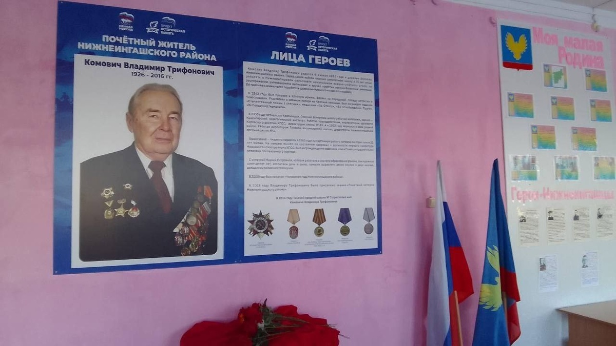 «Лица Героев»: память, которая учит и вдохновляет В Тинской школе №3 открылся уголок памяти Владимиру Трифоновичу Комовичу — ветерану Великой Отечественной войны, педагогу и директору местных школ. Родившись в 1926 году в Нижнеингашском районе, он в 17 лет ушел на фронт. Воевал в составе 1-го Украинского фронта, был награжден орденом Отечественной войны I степени, медалями «За отвагу», «За освобождение Праги» и «За Победу над Германией». После войны посвятил жизнь образованию, став директором Тинской и Нижнеингашской школ. Проект «Лица Героев» — это не только дань уважения, но и живой урок для школьников. Такие истории, как история Владимира Трифоновича, — это судьбы людей, которые строили и защищали нашу страну. 📌 В Красноярском крае продолжается реализация проекта, чтобы память о героях оставалась в сердцах новых поколений. #ГазетаПобеда #ЕР24 #КрасноярскийКрай #Образование #Патриотизм #История #ЛицаГероев