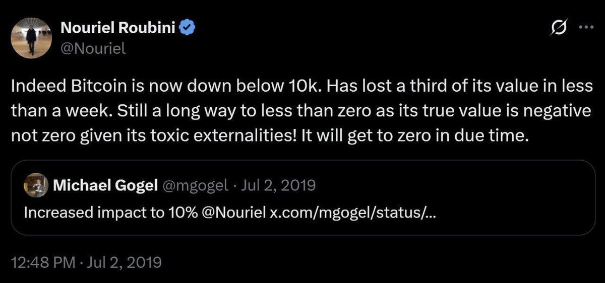⚡️ #TBT: Remember when a NYU professor boldly claimed in 2019 that $BTC would crash to zero? 🧐 Well, we’re still chillin' and waiting for