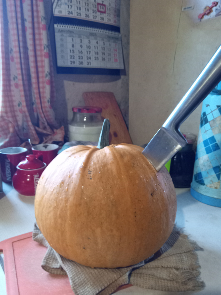 Заинтриговал? Мугунини бобуа товарищи! Прочитал я тут про голосеменную тыкву и решил зарезать свою красавицу. Вся надежда только на неё и осталась. Восстановить честь, так сказать, голых, ой, голосеменных тыкв. 🎃 Единственная тыква которая выросла в нашей (и не только в нашей) деревне. И здесь мне важно всё и вкус, и цвет, и семечки. Семечки даже важнее! Три пакетика семян ушло чтоб она выросла. 🥴 Пипец! Блин! 🤬🤬🤬 Вот такая у меня Абрикосовая! Разделать тушку то легко. Её ж ещё переработать надоть. Не, надо сначала попробовать, чё там такого абрикосового, а потом уже посмотрим, котлеты или жаркое, азу или бифштекс. 🥩 Уряяяя! И семечки есть! Так, теперь на вкус попробую. Хм, абрикосами и не пахнет. Какой-то запах есть, но далёкий, далёкий. Ну правильно! А чего я хотел? Она ж росла не под ласковым самарским солнцем, а под хмурыми, холодными дождями Псковщины. 🤷♂️ Эх, ей бы солнышка чуток. 🤏 Ладно, у меня три варианта переработки. Варенье, цукаты, сок. Хотя её можно и пожарить,