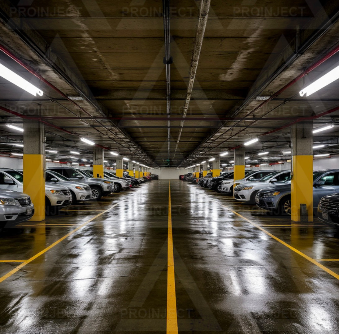 Актуальность проблемы Подземные паркинги постоянно подвергаются агрессивному воздействию влаги, перепадов температур и механических нагрузок. Инъектирование позволяет решить проблемы гидроизоляции и укрепления конструкций без остановки эксплуатации объекта. Особенно критично для паркингов, расположенных ниже уровня грунтовых вод. 1. Протечки через холодные швы бетонирования 2. Трещины в стенах и плитах перекрытия 3. Капиллярный подсос через бетонные конструкции 4. Разрушение гидроизоляционного слоя 5. Коррозия арматуры из-за постоянной влажности · Ускоренное разрушение конструкций · Образование сосулек зимой · Коррозия автомобилей · Неприятный запах и плесень 1. Подготовка · Очистка поверхностей дробеструйной обработкой · Разметка проблемных зон · Установка временных ограждений 2. Бурение · Диаметр отверстий: 12-20 мм · Глубина: 2/3 толщины конструкции · Шаг между точками: 15-25 см 3. Инъектирование · Использование профессиональных насосов · Давление подачи: 5-15 атм