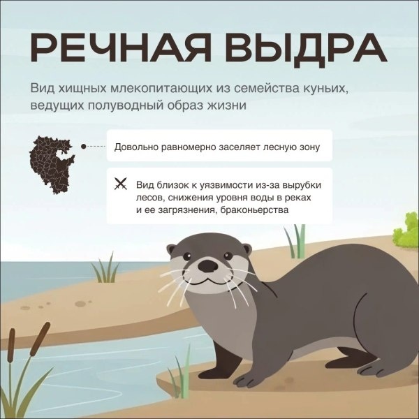 Некоторые животные Башкортостана становятся уязвимыми из-за того, что меняется их среда обитания. Например, речная выдра она может попасть под угрозу исчезновения из-за браконьерства и загрязнения воды в реках. Смотрите карточки с животными из Красной книги Башкортостана. Давайте вместе подумаем, что мы можем сделать, чтобы не допустить угрозы их исчезновения. Источник https://uchaly102.ru/?p=110436