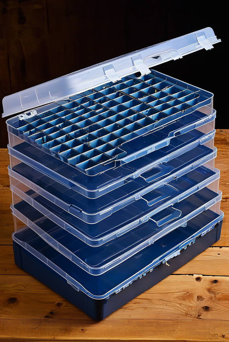 Безусловно. Главная особенность, на которую стоит обратить внимание, — это переставные перегородки. Они позволяют гибко изменять размер и вместимость внутренних отсеков. Вы сможете создать как длинные ячейки для сверл или крепежа, так и множество мелких ячеек для таких вещей, как шайбы, бисер или рыболовные снасти.