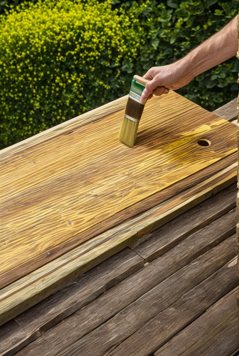 - Масло для террасы: Глубоко проникает в структуру дерева, защищая его изнутри и придавая водоотталкивающие свойства.