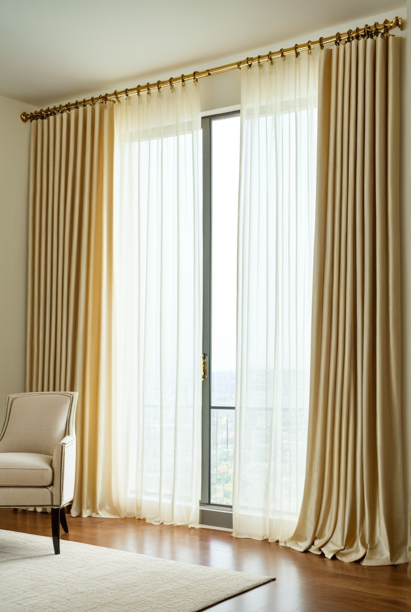 Выбор фурнитуры напрямую влияет на дизайн и функциональность всей шторной композиции. Люверсы — это кольца (металлические или пластиковые), установленные прямо в ткань, которые надеваются на круглый карниз-штангу. Они создают идеальные, равномерные складки и отлично смотрятся в современных интерьерах, но требуют больше ткани. Крючки, универсальный и самый популярный вариант. Они цепляются за шторную ленту и используются как с профильными и шинными карнизами, так и с кольцами для штор на штангах. Они обеспечивают легкое скольжение и подходят для любых тканей, от легкого тюля до тяжелых штор. Зажимы («крокодильчики») позволяют повесить занавески без петель, но их стоит использовать с осторожностью: они могут оставить следы на деликатных материалах и не предназначены для тяжелых портьер.