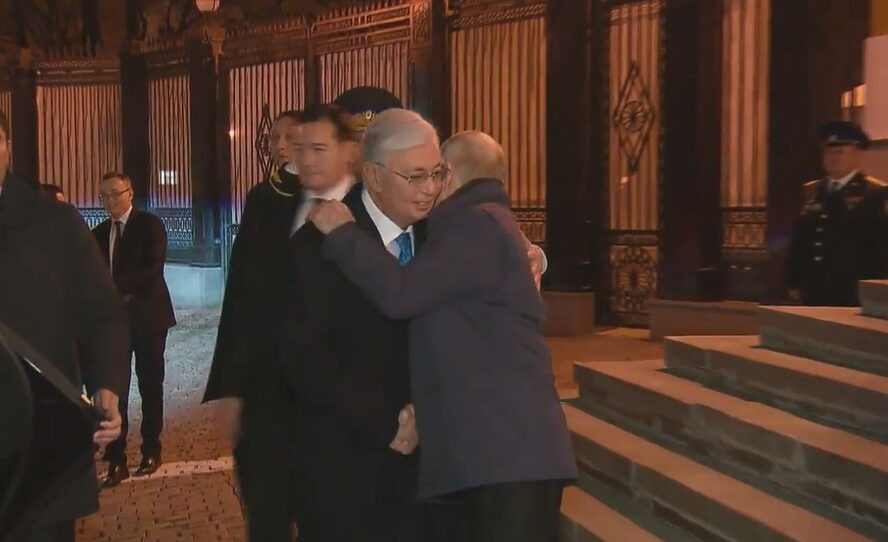 Президент России Владимир Путин тепло проводил казахстанского коллегу Касым-Жомарта Токаева до автомобиля после неформального ужина в Кремле во вторник. На кадрах главы государств спускаются по лестнице и обнимаются. «Спасибо вам большое за гостеприимство. До встречи завтра», — сказал Токаев. В пресс-службе Кремля сообщили, что визит казахстанского лидера в Россию продлится с 11 по 12 ноября. «Будут обсуждены актуальные вопросы дальнейшего развития российско-казахстанских отношений стратегического партнерства и союзничества в политической, торгово-экономической и культурно-гуманитарной сферах, а также основные темы региональной и глобальной повестки дня. <…> К подписанию в ходе визита подготовлены важные двусторонние документы», — говорится в сообщении. В пресс-службе добавили, что лидеры двух стран в режиме видеоконференции обратятся к участникам пленарного заседания XXI Форума межрегионального сотрудничества России и Казахстана, который пройдет в Уральске.