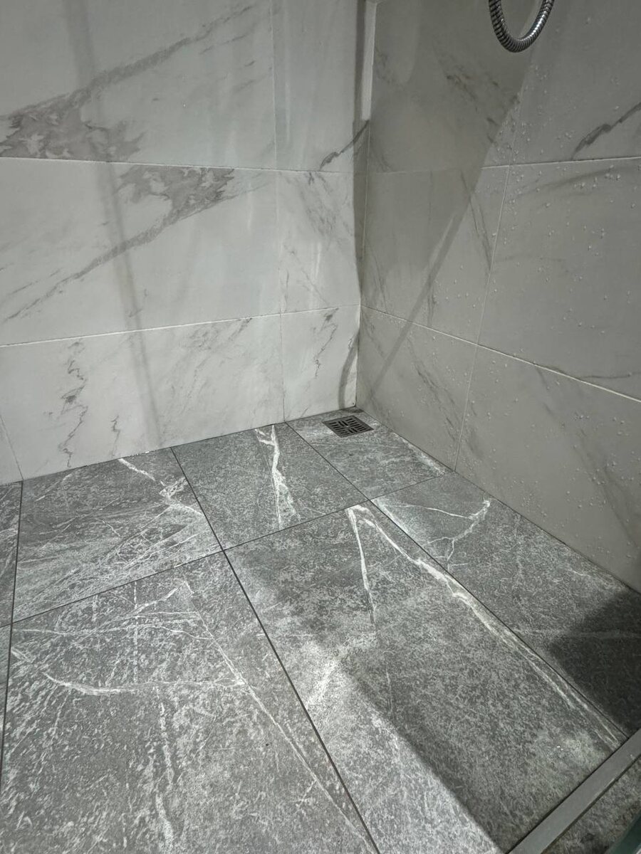 Трап Мы как-то привыкли устанавливать трапы в одни и те же места. Если квадратный, то по центру, если лотковый, то ближе к смесителю. Но есть и другие, не менее интересные способы. Например, на фото установили маленький трап в угол. Смотрится неплохо. Вода уходит отлично и ногам не мешает. А еще я видел щелевой трап прямо под дверью, но пока он не смог сфоткать. Как увижу, обязательно покажу.