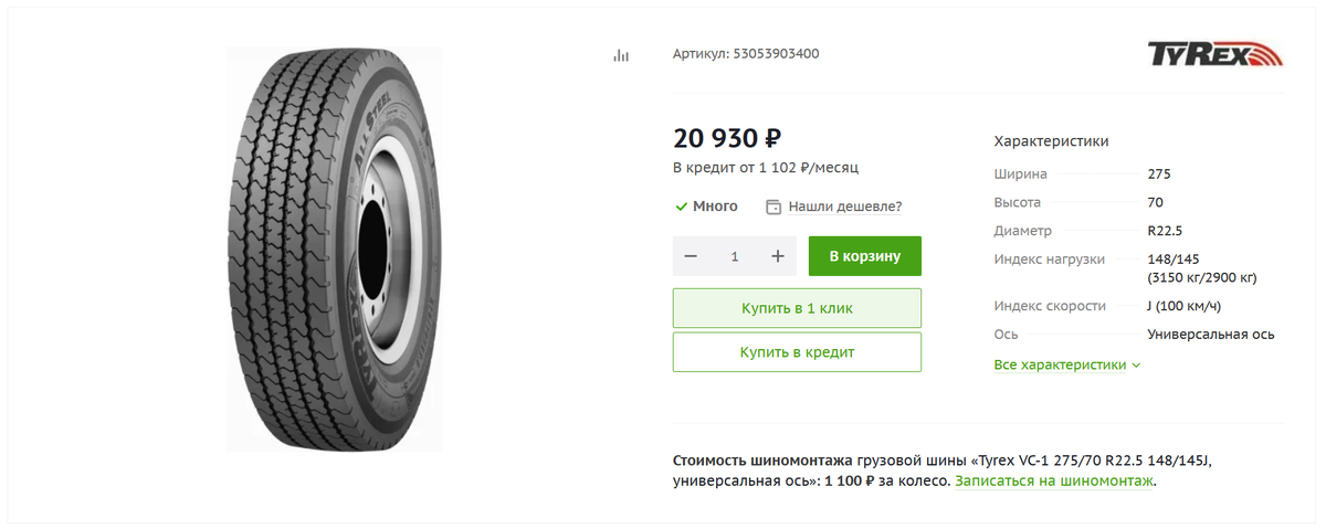 Грузовая шина Tyrex VC-1 разработана для установки на любую ось.