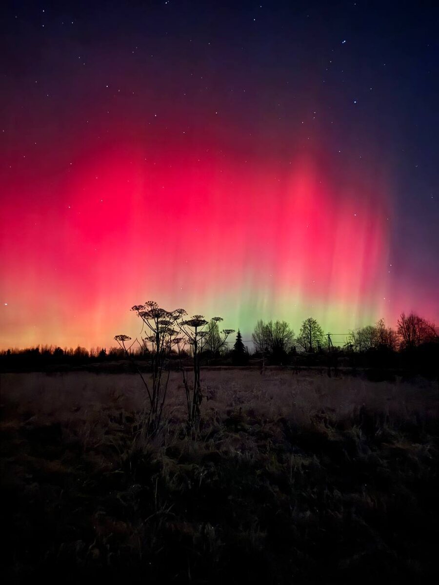❤️🔥 Небо вспыхнуло красным: над Ленобластью заметили редкое полярное сияние