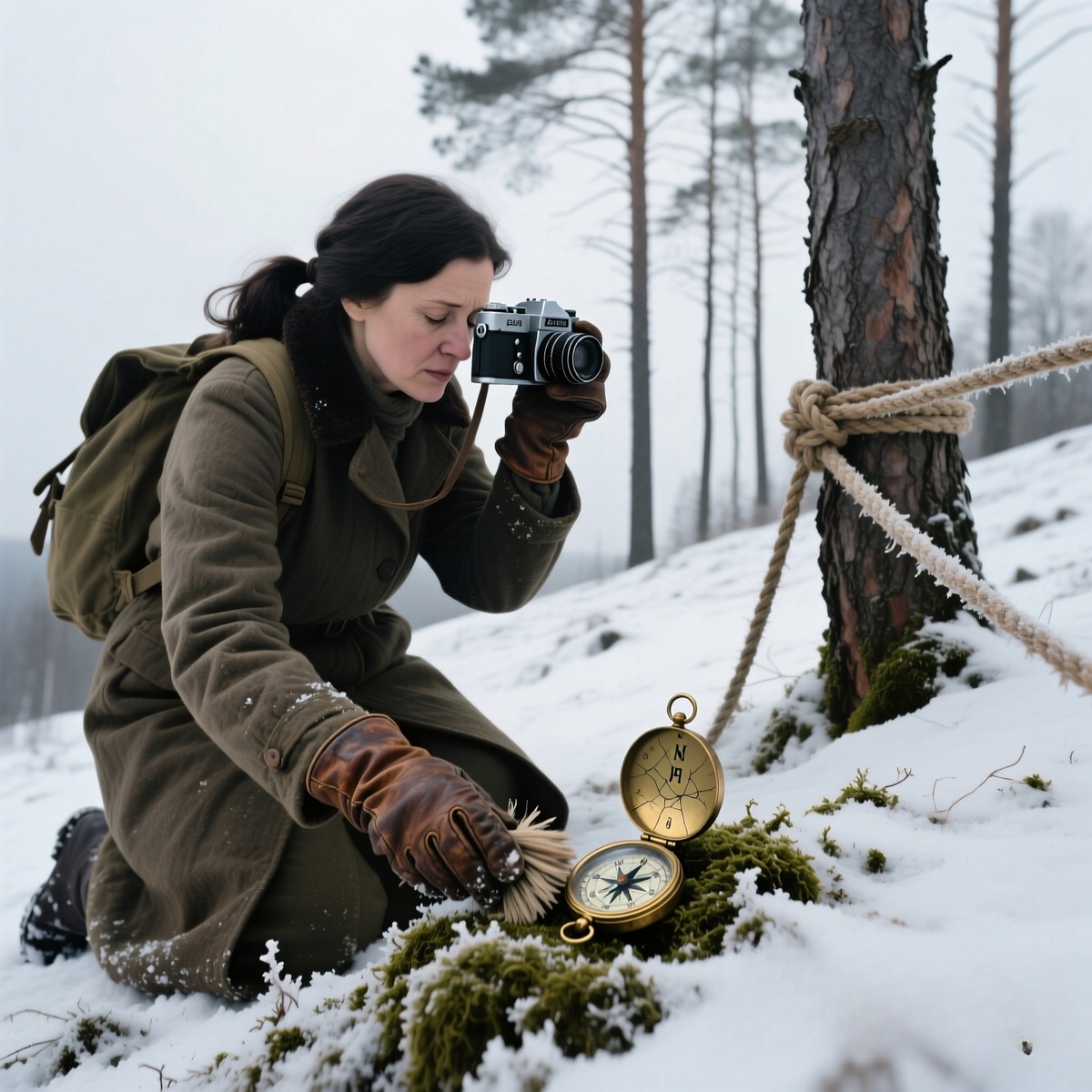 Елена медленно подошла к левому холмику, присела на корточки, руками мох отгребла аккуратно, как археолог. Долго ничего не было видно, потом что-то блеснуло. Компас. Армейский, с трещиной на стекле. Она его взяла двумя руками, поднесла к лицу, понюхала даже, как будто отца запах искала. Тихо сказала: «Это его. Он всегда его с собой носил, с армии еще. Я в детстве играла, север искала».