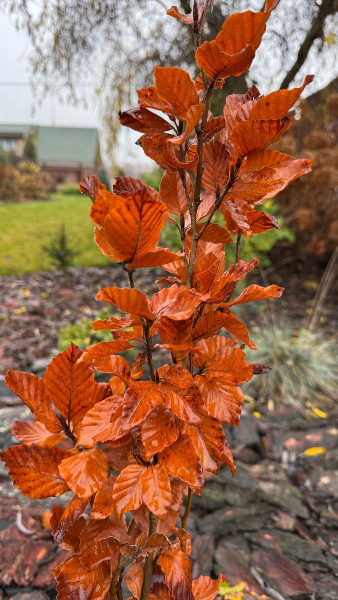 С наступлением осени сад постепенно теряет краски, но именно в это время проявляют себя истинные звезды ландшафтного дизайна. Одной из таких находок в моем саду в этом году стал колонновидный бук «Столвийк Голд» (Fagus sylvatica ‘Stolwijk Gold’). Это растение, о котором я давно мечтала, полностью оправдало ожидания и стало главным источником вдохновения в унылый сезон. 1. Яркая листва. Своё название «Голд» (золотой) этот сорт оправдывает полностью. На протяжении всего лета его листва сохраняет насыщенный желтый цвет, освежая пространство. 2. Осенняя трансформация. С приходом осени «Столвик Голд» преображается: желтый сменяется на эффектный ярко-оранжевый, что делает дерево настоящим фаворитом на фоне оголившихся соседей. 3. Компактная форма. Узкая, колонновидная форма роста — ключевое преимущество для небольших участков. Дерево растет вверх, занимая минимум места, что позволяет использовать его даже в самых скромных по площади садах. Интересная особенность: марцесценция Наблюдая за св
