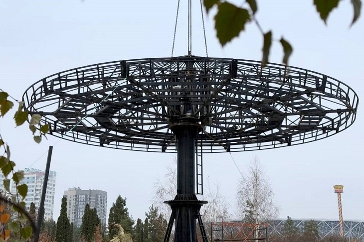 В ЦПКиО Волгограда полным ходом идет установка аттракциона «Свадебная карусель», который был демонтирован в сентябре текущего года для размещения фонтанного ансамбля с амфитеатром. Как сообщил директор парка Андрей Еркин, аттракцион сейчас устанавливают в новом месте – у главной сцены парка и ярмарочной площадки. Монтаж продлится три недели. «Свадебная карусель» появилась в ЦПКиО в 2023 году. Это один из самых популярных аттракционов в Центральном парке. Его обещают запустить к Новому году. Фото Андрей Еркин / t.me