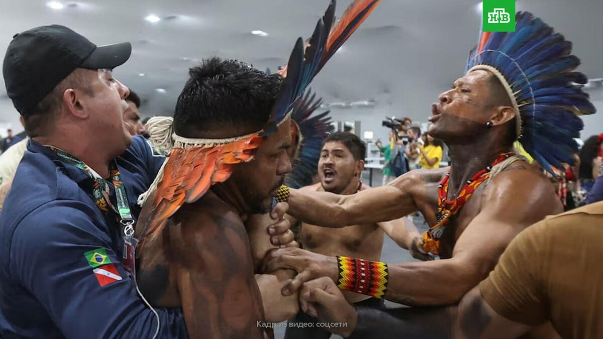 [ Смотреть видео на сайте НТВ ] Активисты ворвались на территорию комплекса, где проводится климатический саммит ООН в Белене, и устроили столкновения с полицией. Двое охранников пострадали в результате нападения протестующих, прорвавшихся на территорию проведения международного климатического саммита ООН в Бразилии. Об этом сообщает Reuters. По информации СМИ, две группы протестующих — в желтых майках и в национальных костюмах индейских племен — прорвались на территорию комплекса, где проходят мероприятия саммита. Поначалу митингующие протестовали мирно, они скандировали лозунги, пели и танцевали, но после обстановка накалилась. Начались массовые потасовки с полицией, в результате которых травмы получили не менее двух служителей правопорядка. Представители коренных народов требуют защитить леса Амазонии и хотят, чтобы позиция индейцев была учтена на саммите при принятии решений в области защиты тропических лесов. 30-я конференция сторон Рамочной конвенции ООН об изменении климата (COP
