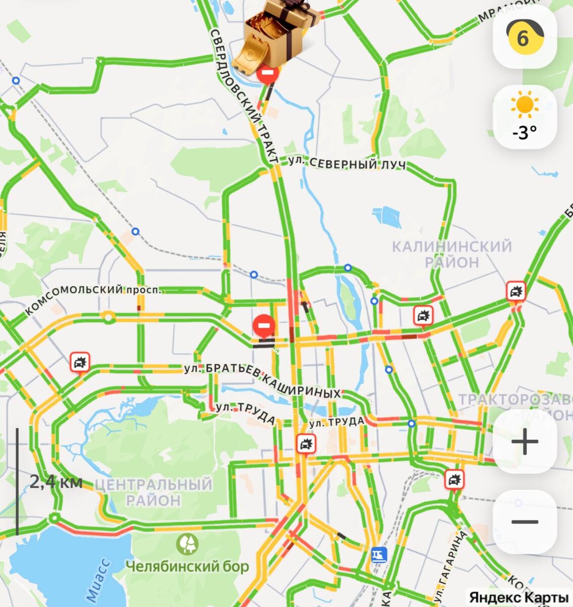 ❤️ Пробки в шесть баллов образовались в Челябинске 🚗 Движение затруднено во всех районах города. На дорогах сильная гололедица. В городе насчитывается около 6-7 аварий: на улице Братьев Кашириных, на проспекте Ленина, на проспекте Победы, на улице Бажова и на Меридиане. ⛔️ Дороги перекрыты на улице Черкасская, Каслинская, Овчинникова и на проспекте Победы. ☁️ Температура воздуха -3°, ясно. #город@chelyabinsk_smi Поддержать Челябинск: проголосовать 👍 Подписаться | Прислать новость