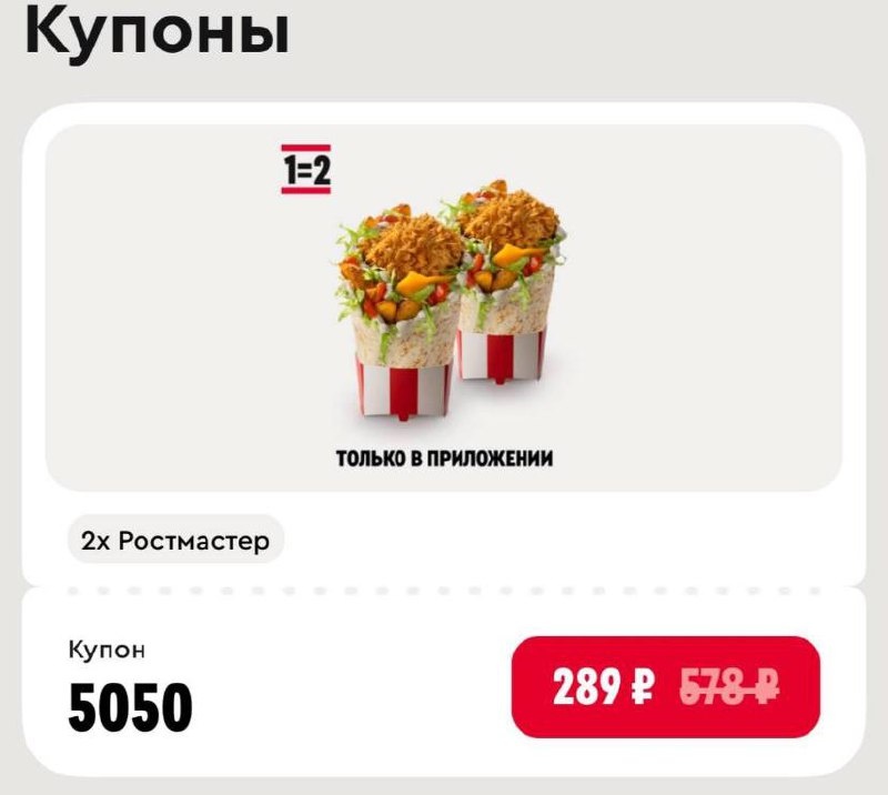 Доброе утро 😃 🍔 ROSTIC’S 2 по цене 1 Купон: 5050 ✅ Подписаться 🔣 Бот с промокодами